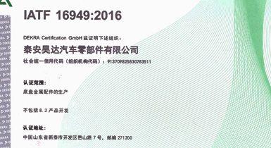 公司擁有IATF16949:2016國際標(biāo)準(zhǔn)質(zhì)量管理體系認(rèn)證,擁有實(shí)
